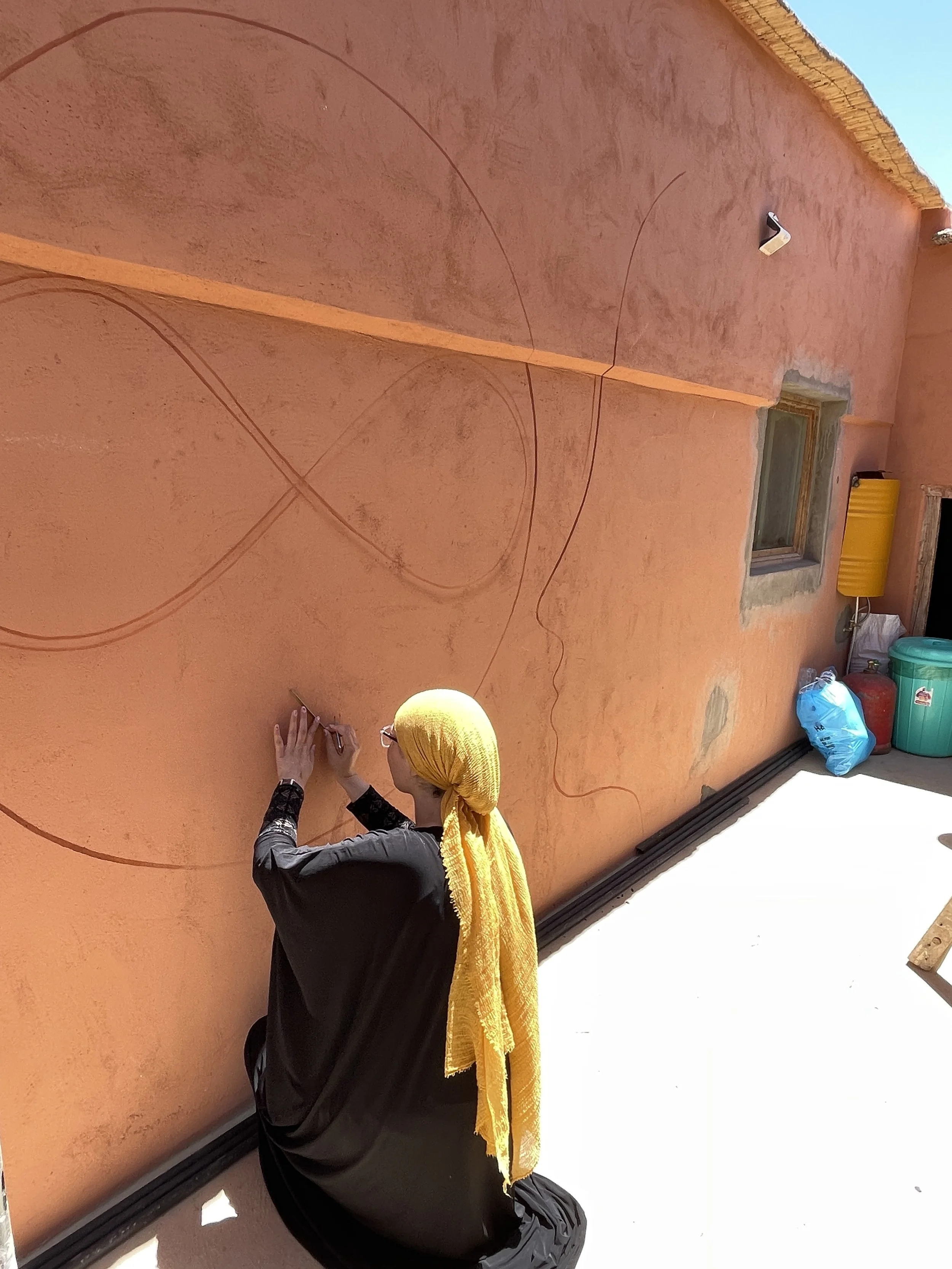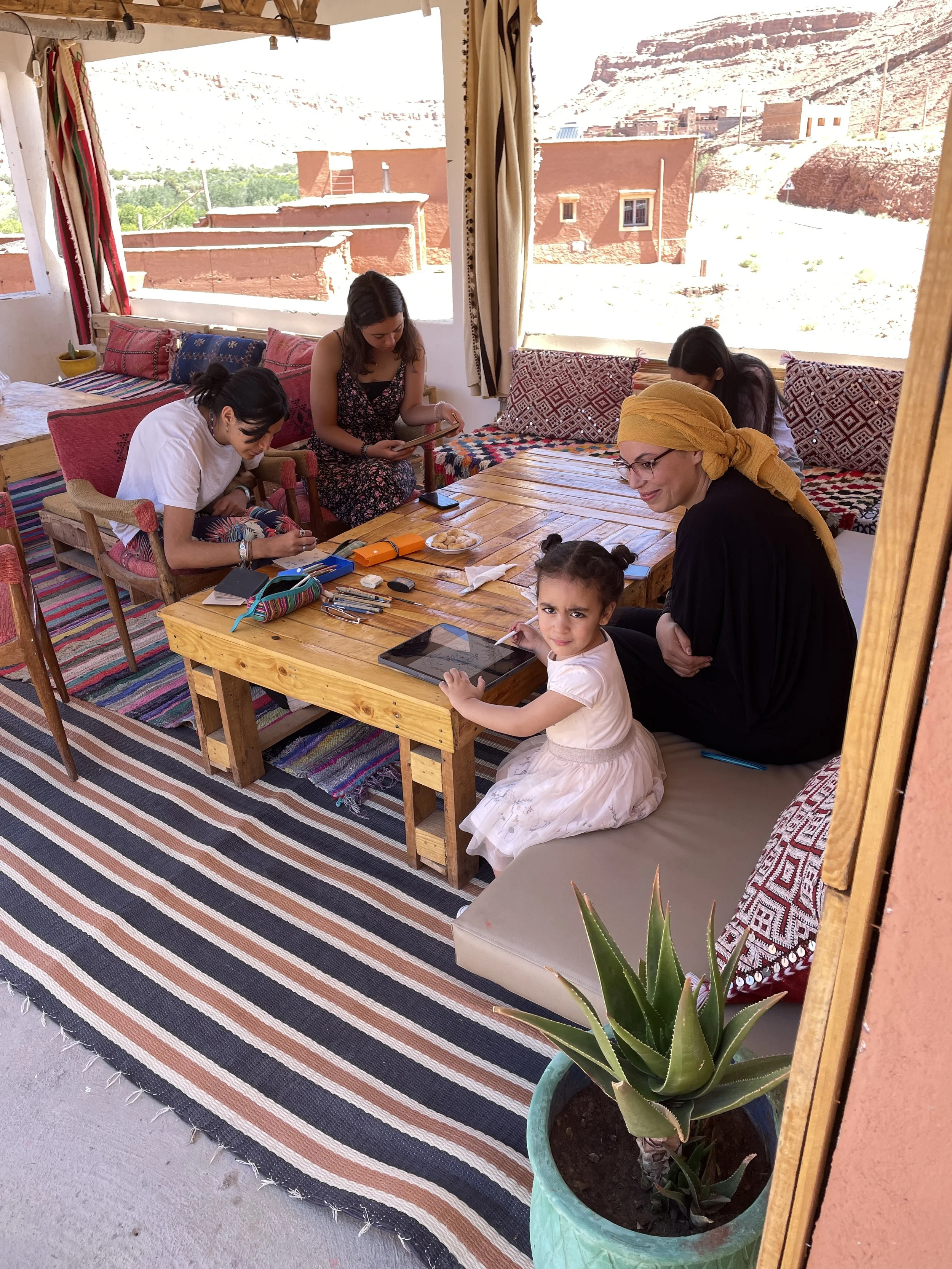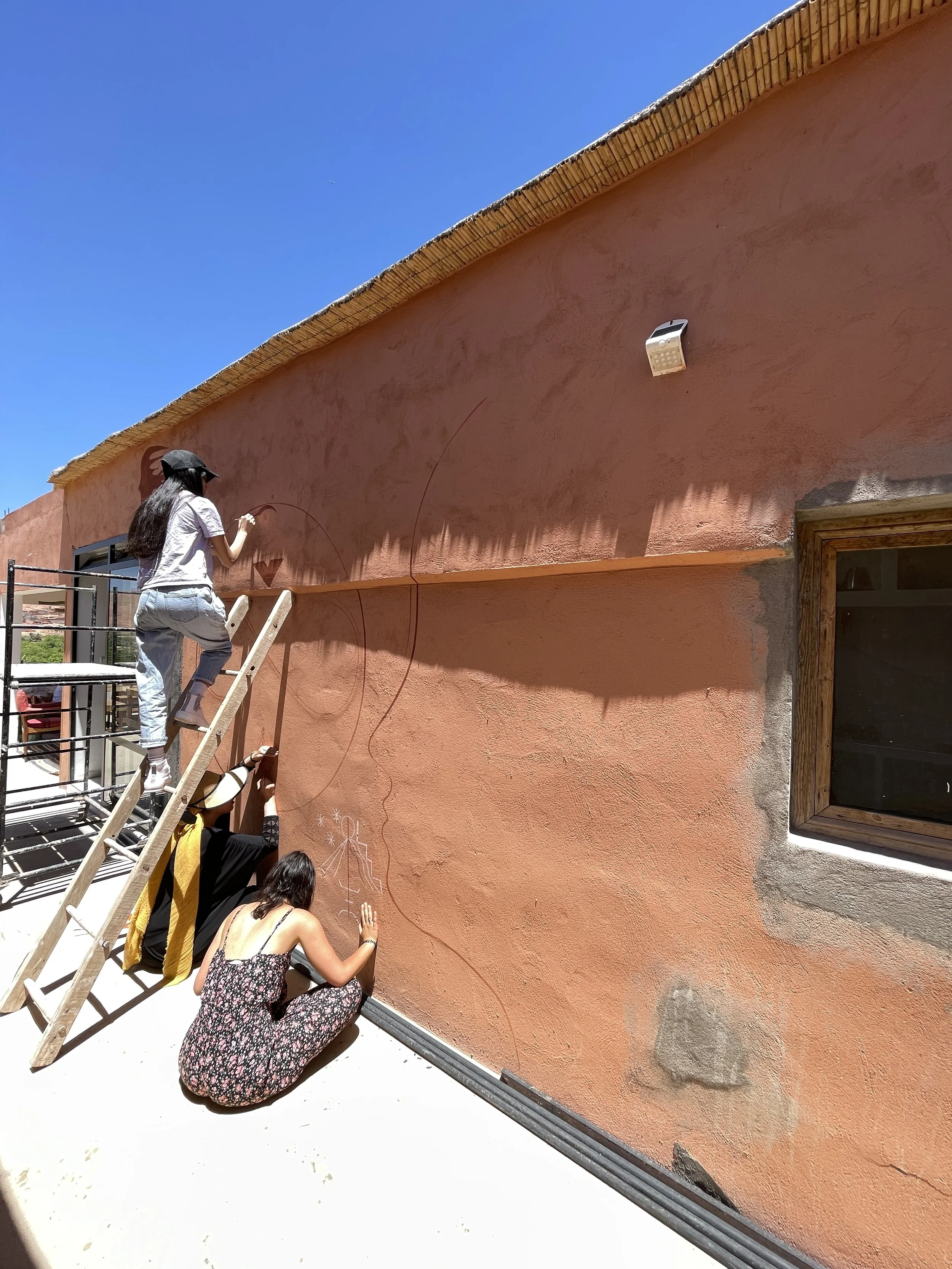 Using pigments collected in the Atlas Mountains, we created a mural with local womxn & youth, to reflect the symbols and feelings of the Ait Bin Haddou region.