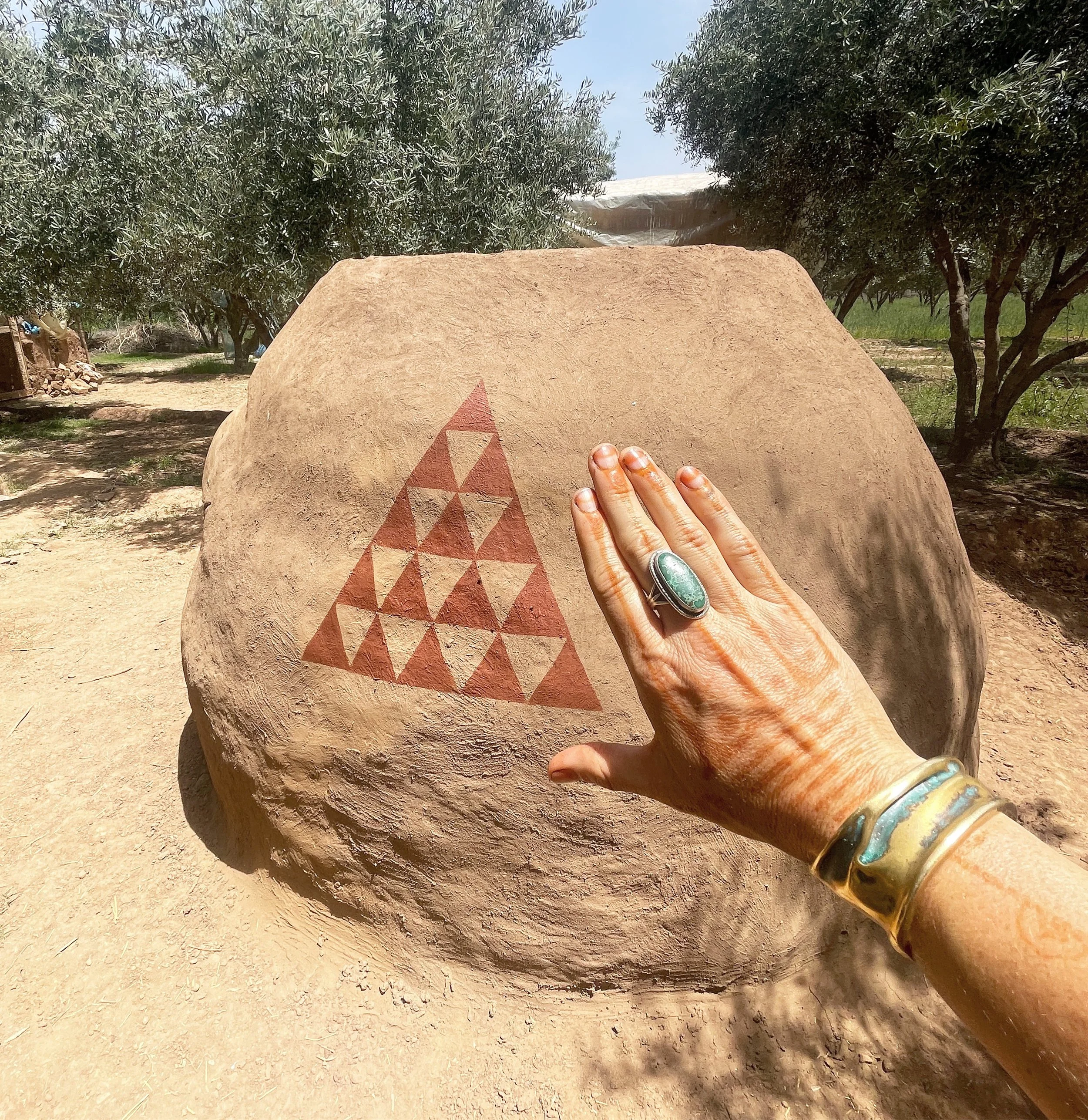 In April Lisa Rooney and many others made our first earthwork, among the olive trees.